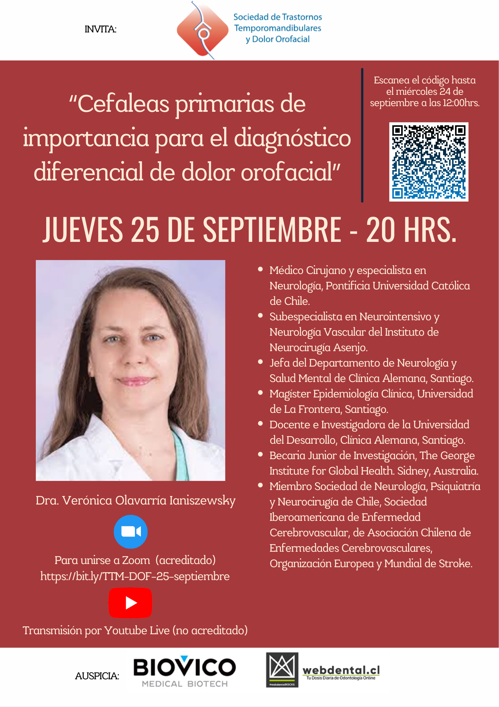 Reunión Científica Septiembre 2025: "Cefaleas primarias de importancia para el diagnóstico diferencial de dolor orofacial"